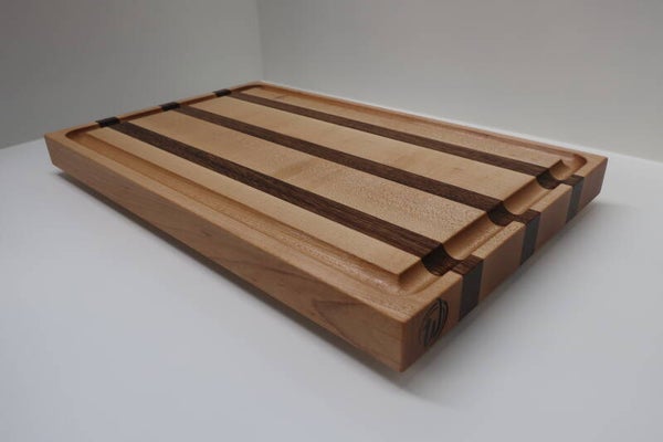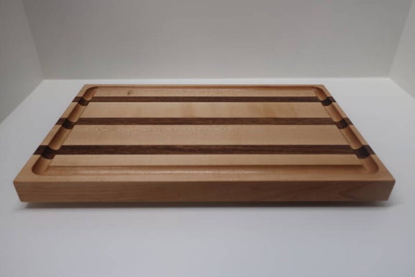 Snijplank/serveerplank gemaakt van beuk en zebrano + sapgroef.